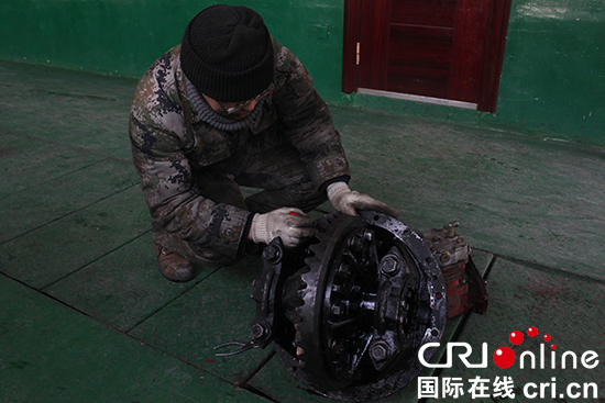机务人员修理车辆零部件。摄影 李鹏