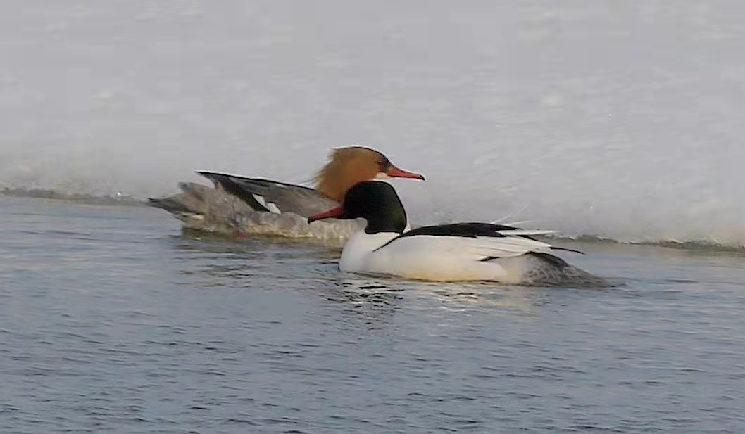 爱了!中华秋沙鸭和海鸥的“捕鱼比赛”