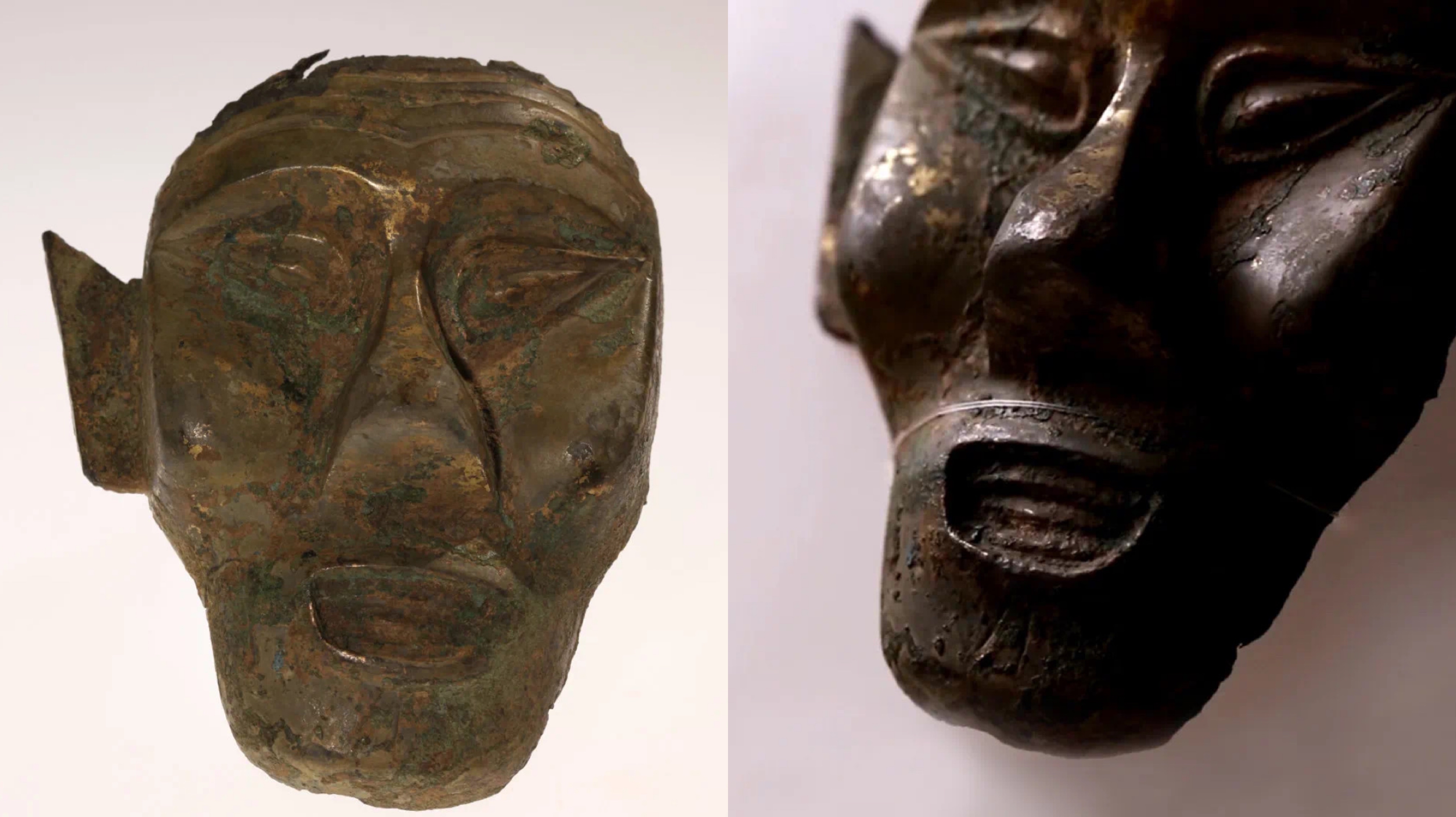 至于这件面具为什么只有一只耳朵,据吉林省博物院工作人员介绍,第一,可能后期面具在保存的过程中或是在流传的过程中,一只耳朵残破了;第二,可能一开始它所描绘的这个人的形象就是一个缺少一只耳朵的人,这个面具和当时的宗教文化有关。
