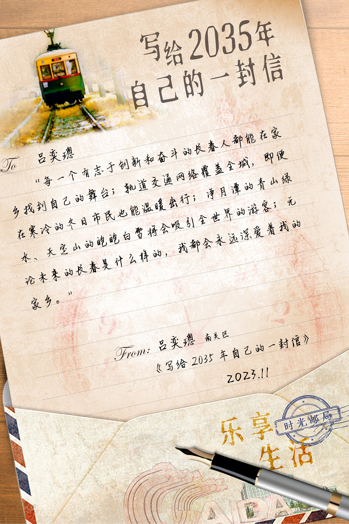 一等奖作品《写给2035年自己的一封信》(吕奕璁) 制图 雷小蕾