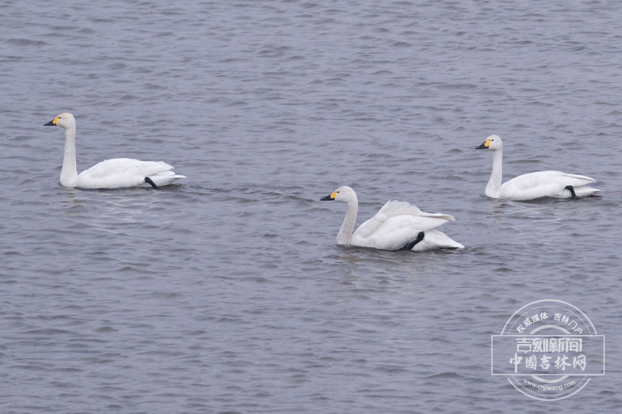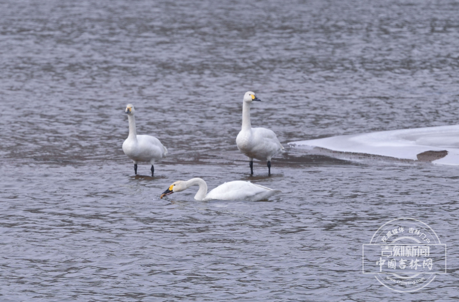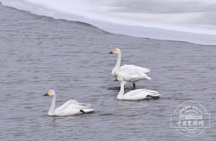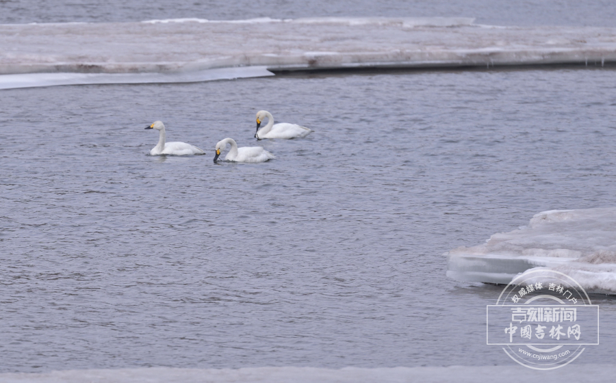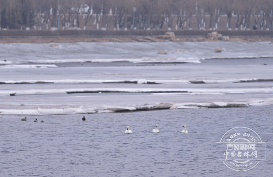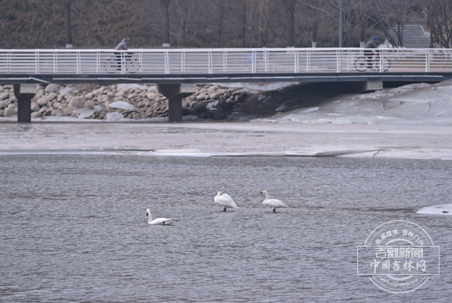 2月25日,长春伊通河来了三只白天鹅,它们在半冰半水的河中游弋。伊通河经过多年治理,生态越来越好,吸引大量迁徙鸟类在此“歇脚”。记者 蒋盛松 摄影报道