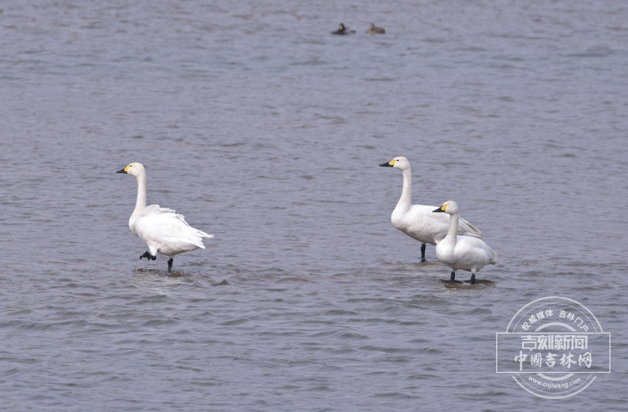 伊通河来了三只白天鹅
