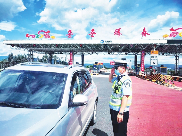 省公安厅高速公路公安局延吉分局民警在珲春站口对过往车辆进行检查。 张高越 摄