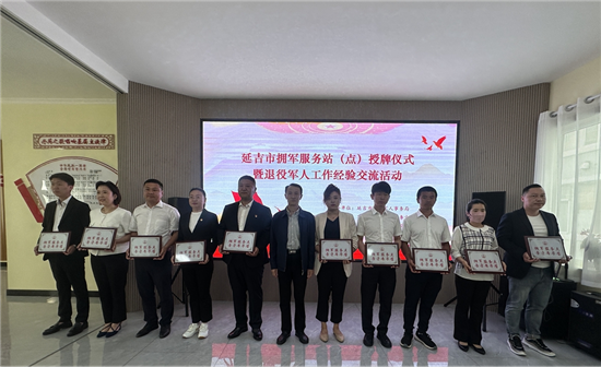 日前,延吉市拥军服务站(点)授牌仪式暨退役军人工作经验交流活动在延吉市北山街道丹英社区退役军人服务站举行。