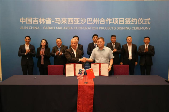 华瑞参业董事长金立华(前排右)与马来西亚沙巴州政府、沙巴中国总商会签约合作项目
