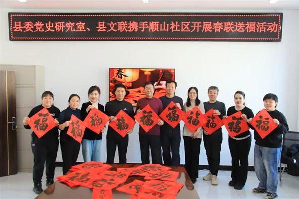 新春将至,年味渐浓。为深化支部共建成果,传承中华优秀传统文化,切实把党组织的关怀与温暖送到群众心坎上,近日,安图县委党史研究室、安图县文联党支部、安图县书法家协会到支部共建联系点顺山社区,共同开展“送春联、传祝福”惠民活动。