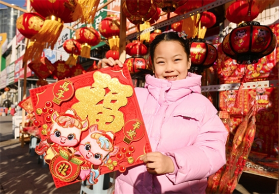 河南市场沿街摊位早已挂满各式春联、“福”字和窗花,红彤彤一片,格外喜庆。摊主一边整理货品一边介绍:“今年带马元素的装饰品特别受欢迎,像马到成功、龙马精神的春联,还有小马造型的挂件,卖得最快。”