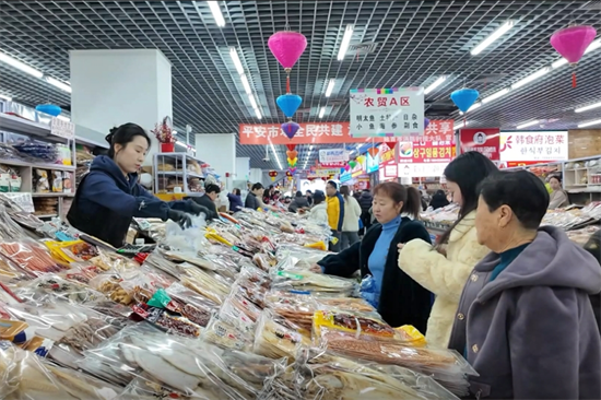 上午9时许,延吉西市场已是一片熙熙攘攘。作为延边知名的老字号市场,这座集农贸、百货、特色美食、民俗文创于一体的综合性市场,是延吉人置办年货的首选地。四楼的日杂区被春联、福字、灯笼装点得年味十足。从朝鲜族传统服饰到日常百货,从山珍海味到零食调料,人们在这里一站式购齐年货。
