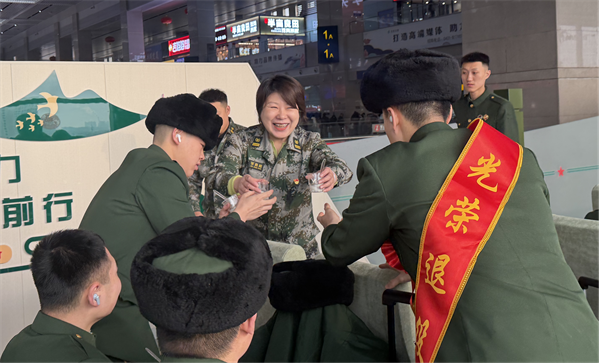 驿站内,工作人员结合铁路时刻表,提醒退役士兵按时登车、送站高铁,感谢他们为部队建设付出的青春和汗水。站台上,退役士兵向部队和工作人员挥手话别,依依惜别间满是不舍与感恩。