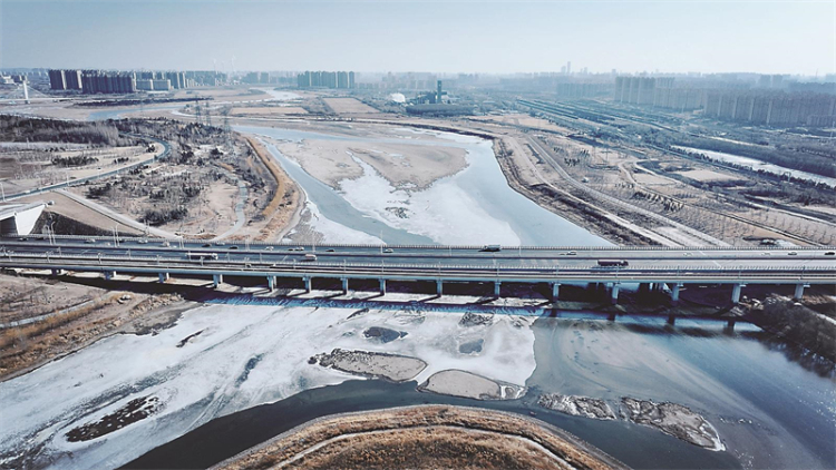 随着气温持续回暖,长春伊通河畔迎来了冬春交替的独特景致,放眼望去,河道“一半冰封一半流淌”。残冰如玉,卧于碧波之上;流水潺潺,奏响春之序曲。(记者 潘硕 摄)