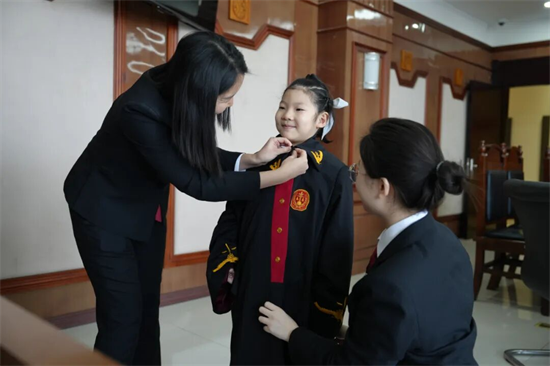 法官帮助小朋友试穿法袍 供图 朝阳区人民法院