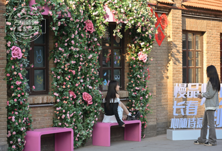 3月28日,长春商埠地历史文化街区内,一面由“粉蔷薇”与“玫瑰”装点的花墙已正式亮相,为春城春日增添了一抹温柔诗意,成为市民游客争相打卡的新晋网红地标。(记者 蒋盛松 摄影报道)